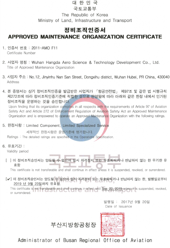 200110月    公司獲中國民航總局授權(quán)的民航維修許可證。